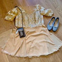 Brun ormskinnsmönstrad väska med ett lock i senapsgul mocka. Väskan har en justerbar axelrem och stängs med magnetlås. Inuti finns ett fack för nycklar eller läppstift.