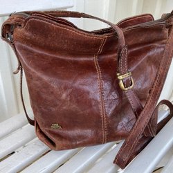 Italiensk läderhandväska, the bridge, känd för sitt hantverk och klassisk stil
