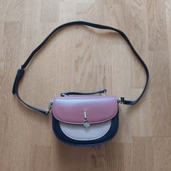 En cross-body väska gjort av tyg. Justerbar rem. Mått ca 28×20cm