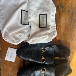 Mycket bra skick, lite använd. I tjock skinn. Svart med guldkedjor som går lägga i handväskan så den blir en clutch. Har innerficka med dragkedja.
