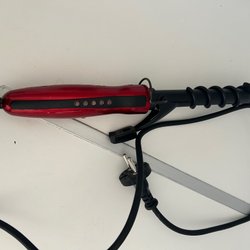 locktång för att skapa lockar och vågor. Den har en sladd och en strömkontakt.