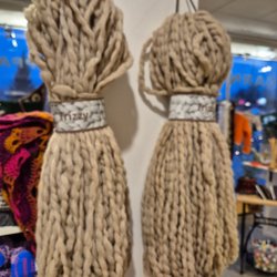 Ett set med en mössa och en halskrage/buff. Båda har ett mönster med lamor och kaktusar på en rosa bakgrund. Handsydda i dubbelt jerseytyg. Varma och välsydda NPF-vänliga. Perfekt julklapp