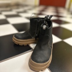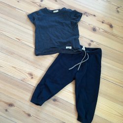 Söt mörkblå mössa med två små tofsar upptill. Mössan har en nedvikt kant och en liten etikett nedtill på kanten. Storlek 48/50 (9-24 mån).
