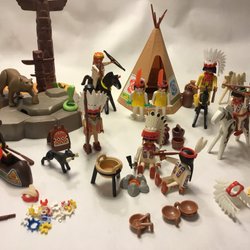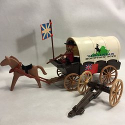 Playmobil Vilda Västern - Björnjägare Brörnskinn Hästar Prärievagn Vapen mm USA