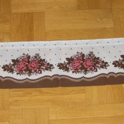 Jag köpte en gardin på Antik- och retromässan men den är tyvärr för liten här hemma.