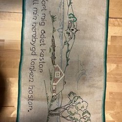 Färgglad väggbonad med motiv av kvinnor vid en brunn och ett oxdjur. Dekorativ textil som livar upp vilket rum som helst. Mått: ca 47 x 116,5 cm