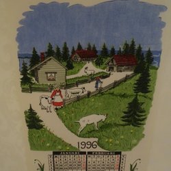 1998 kalender väggbonad kyrka röda hus sommarblommor