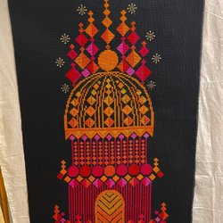 En väggbonad med ett motiv av ett hus och folk som dansar . Numret på väggbonaden är 8325.