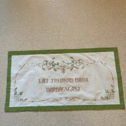 Motiv på Maria Josef , Jesusbarnet och de tre vise männen Med metallupphänge . Storlek 20 x 39 cm
