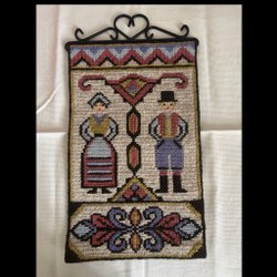 Vacker broderad bonad i mycket gott skick. Broderad på kraftigt bomullstyg. Mått enligt bilder.