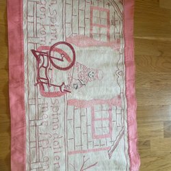 Mycket gammal väggbonad handvävd och sydd text”Och jag skall väva mig en randig skjortklänning en randig sjortel så komma friare från alla orter från alla orter