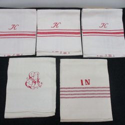 Säljer två stycken hemvävda linnehanddukar i robust kvalitet. Mått 60cm x 57 cm. Den ena handduken har en mindre fläck bredvid monogrammet, se bild.