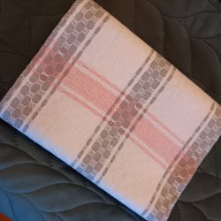 Mått är ca 154 cm brett och 192 cm långt. Vikta fållen nedtill ca 1 cm. Vikt 490 gram.