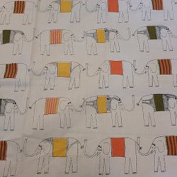 Tyg i grövre bomull. Har haft fållade sidor. Bra skick. Möjligen något tvättblekt. Vet tyvärr ej hur det ska se ut ”nytt”
