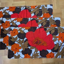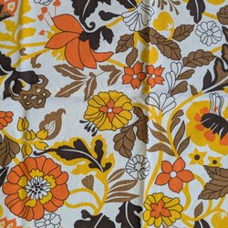 Bomullstyg i rosa, blått, gult och grönt. 100x134 cm. Fin kvalitet, oanvänt vintage tyg.
