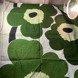 112 cm× 57 cm. Stretching. Färgen är mer varmgrön.