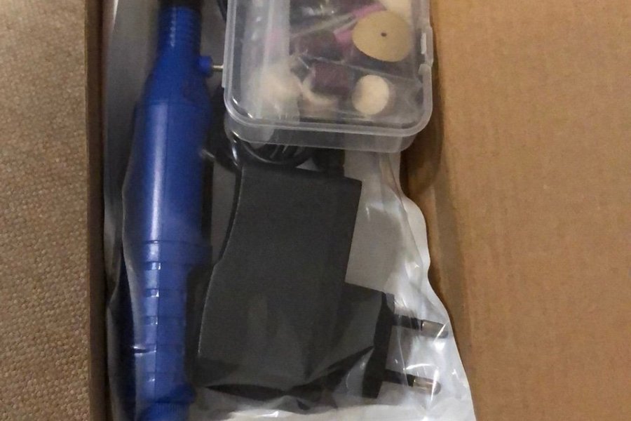 Elektrisk mini-slipsats med tillbehör. Perfekt för att slipa, polera och gravera olika material.