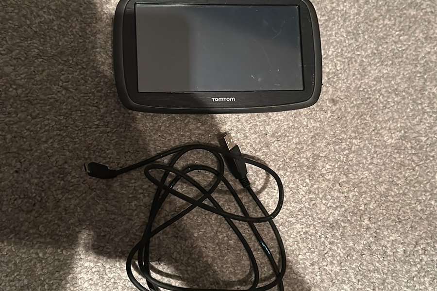 TomTom GPS-navigator för bilresor. Enheten är designad för att ge tydliga vägbeskrivningar och underlätta navigering.
