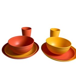 Retro Picknick Väska Picknickväska Plast Koppar Fat Muggar Tallrikar Skedar