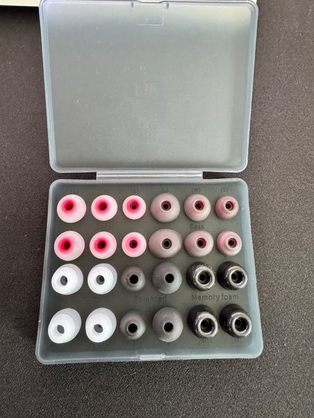 FiiO HS19 12-pack oanvända eartips då dem följde med ett par iems i olika storlekar och material. Inkluderar "Vocal" (L, M, S), "Bass" (L, M, S), "Balanced" (L, M, S) och "Memory foam" (L, M, S) för anpassad passform och ljudupplevelse.