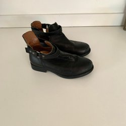 Stuart Weitzman klackar i strl 35 med peeptoe. Svart mocka. Blanka klackar. Mycket fint använt skick.