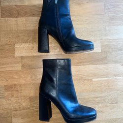 Nya med tillhörande box Svarta wedges ankelstövlar i äkta skinn från CALVIN KLEIN strl 41 i skinn. Nypris 2600kr.