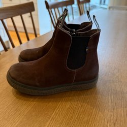 Nästan nya vinterkängor från Bally i storlek 38. Dessa i skinn och ej mocka. Svåra att få tag på då dessa var en limited edition. Skorna har dragkedja baktill och är fodrade. Endast använda 2-3 gånger. Säljer pga fel storlek. Köpta på NK.