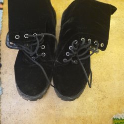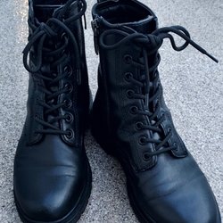 Ett par svarta kängor. Snörning framtill.