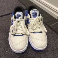 Ett par blå sneakers med vita snören. Perfekt för en avslappnad och bekväm stil. Passar bra till vardags.