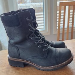 Svart känga med snörning framtill och dragkedja på sidan. Perfekt för alla tillfällen.