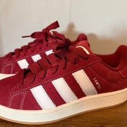 Disse røde sneakers i Str 35, små i størrelsen passer en 34, er et dristigt valg til hverdagsbrug. De har snørebånd og lynlåsdetaljer på siderne. Den tykke sål giver et moderne look. De er lette og er brugt 1 gang.