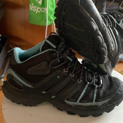 Ett par robusta kängor i brunt och svart. Kängorna har snörning och en rejäl sula som ger bra grepp. Perfekta för utomhusaktiviteter i vått väder.