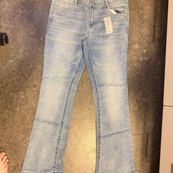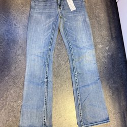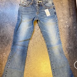 Ett par Diesel jeans med en ljusare tvätt. Jeansen har detaljer på bakfickorna och en liten ficka fram med Diesel logga.