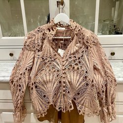 Jeans med fickor bak och fram. Detaljer med en vågformad brodering på bakfickorna.