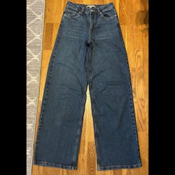 ÄKTA!! Ett par snygga jeans från Gucci med en dekorativ detalj på fickan och en läderpatch baktill med ett R tryckt. Jeansen har en bootcut-modell (som är lite vidare) och en klassisk blå denimtvätt. Om mer frågor ställ gärna! Skulle säga att de är 34/36 i hm storlek och 25 Levis storlek och 24 i Abrand jeans. De är ca 10 cm för långa för mig som är 169. Har klackar på mig första bilden!! Inga defekter, skick enligt bild.