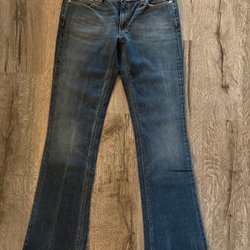 Ett par klassiska jeans med raka ben och normalhög midja. Jeansen har en tidlös design med fem fickor, dragkedja och knappstängning. Detaljer inkluderar kopparnitar och den ikoniska läderpatchen baktill i midjan.