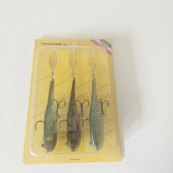 Fiskedrag med svart och vit design. Utrustad med en trekrok. Mått: cirka 10 cm lång. Passar för fiske i olika vatten.
