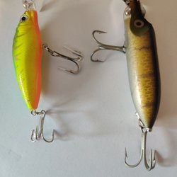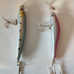 Detta set innehåller två fiskedrag, ett med röd och silverfärgad design samt ett med guldfärgad yta. Båda dragen är utrustade med krokar och är lämpliga för olika typer av fiske. Perfekta för att locka till sig fisk i både söt- och saltvatten.