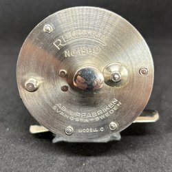 En klassisk ABU Svangsta betesfiskare med röd och vit färg. Utrustad med tre krokar och en metallsked. se bilder för skick.