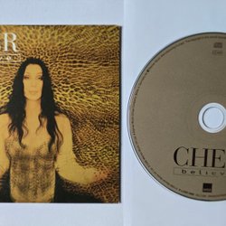 CD-singel med Cher, "Believe". Innehåller två spår: "Believe" och "Believe (Grips Heartbroken Mix)". Skivan är märkt med "Made in Germany by Warner Music Manufacturing Europe".