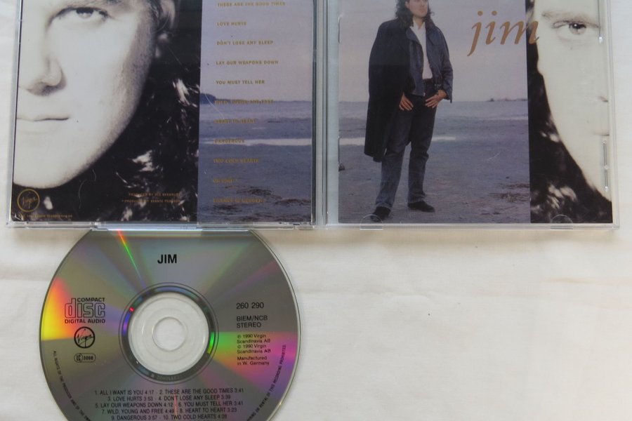 Säljer en CD med Jim. Albumet innehåller låtar som "All I Want Is You" och "Love Hurts".
