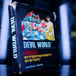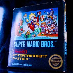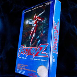 Kassett och box till NES-spelet Rush'n Attack. Spelet är utvecklat av Konami.