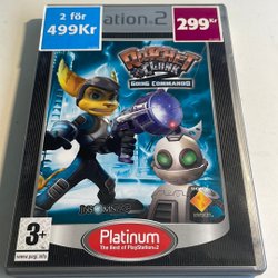 Säljer Ratchet & Clank: Going Commando till PlayStation 2. Spelet är ett actionfyllt äventyr där du spelar som Ratchet och Clank.