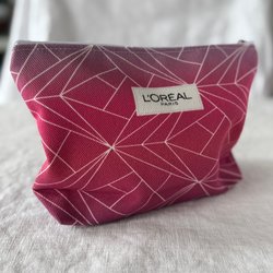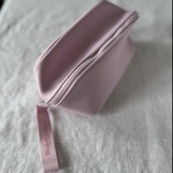 Necessär från Dior i blå denim med dragkedja. Insidan är fodrad med ett ljust tyg med Dior-logotyper. Sminkväska
