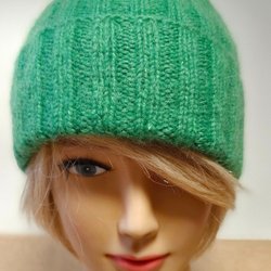 En handstickad mössa i en vacker persikofärg. Mössan har en mjuk, bekväm passform.