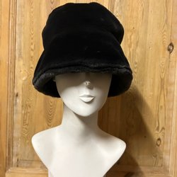Vintage, äkta svart fodrad pälsmössa/hatt