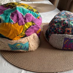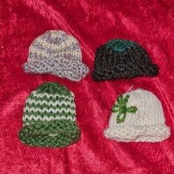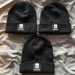 Ett set med tre röd mössor , en röd , en vinröd och en svart med vitt logotyp
