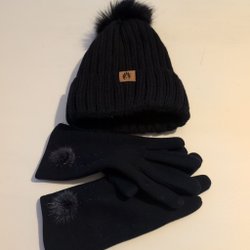 Svart, vit och grå vintermössa med varm fodring.