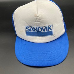 Blå keps med texten MEWAB tryckt på framsidan. Kepsen har en vit kant.