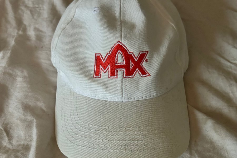 Vit keps med röd MAX-logotyp broderad framtill. Kepsen har en klassisk design med en böjd skärm. Fick den i Danmark för många år sedan när jag jobbade där. Kan vara rolig för någon antar jag. Lite smutsig på bild, har tvättat den sen dess